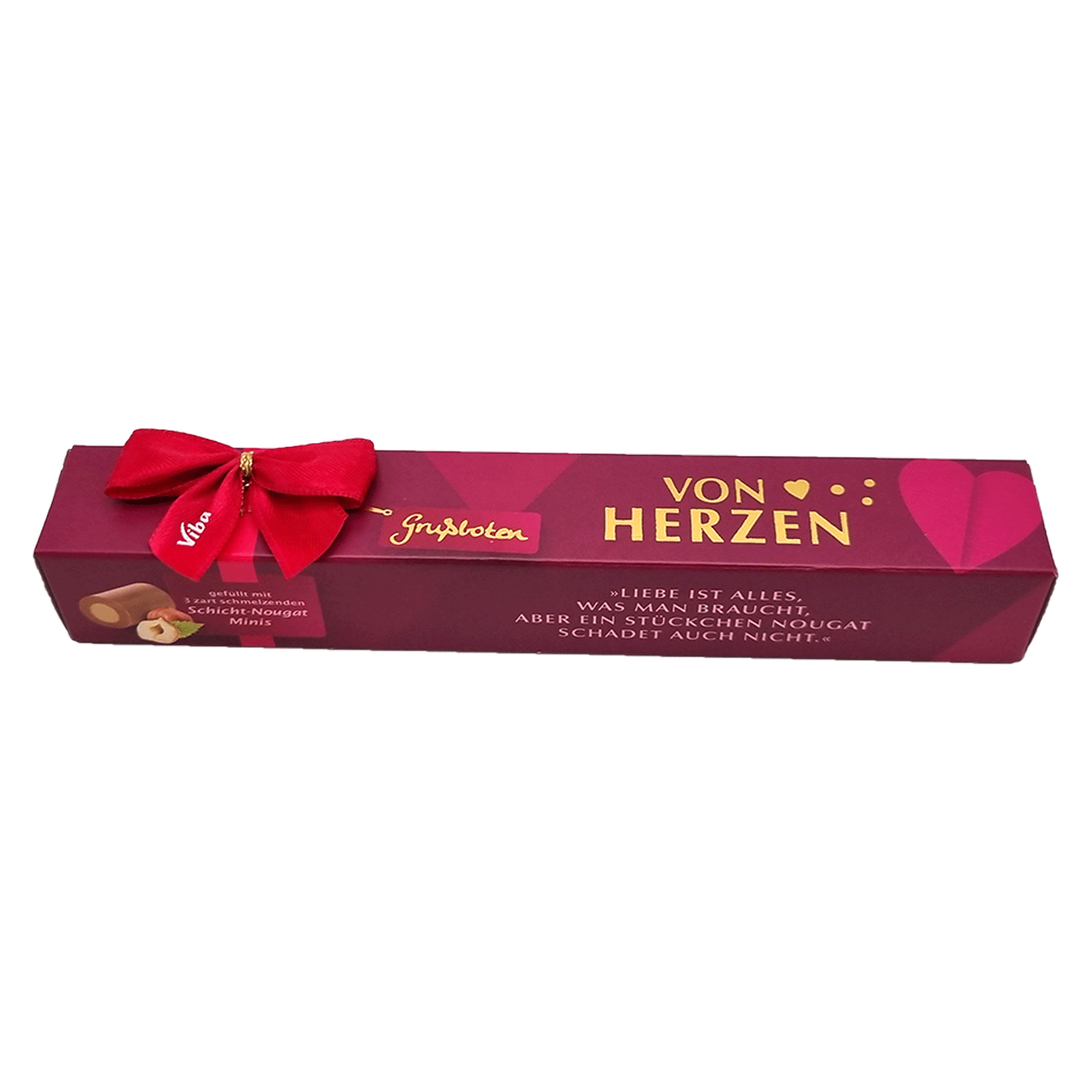 Von Herzen schenken ist die schönste Aufmerksamkeit, welche Sie Ihren Liebsten bereiten können. Und es geht so einfach: verschenken Sie von Herzen die süße Variation aus Viba Classic, Noir und Schicht-Nougat. Eine wahre Herzenssache! Zum Valentinstag für die Liebste, zum Muttertag für Mama oder einfach so.