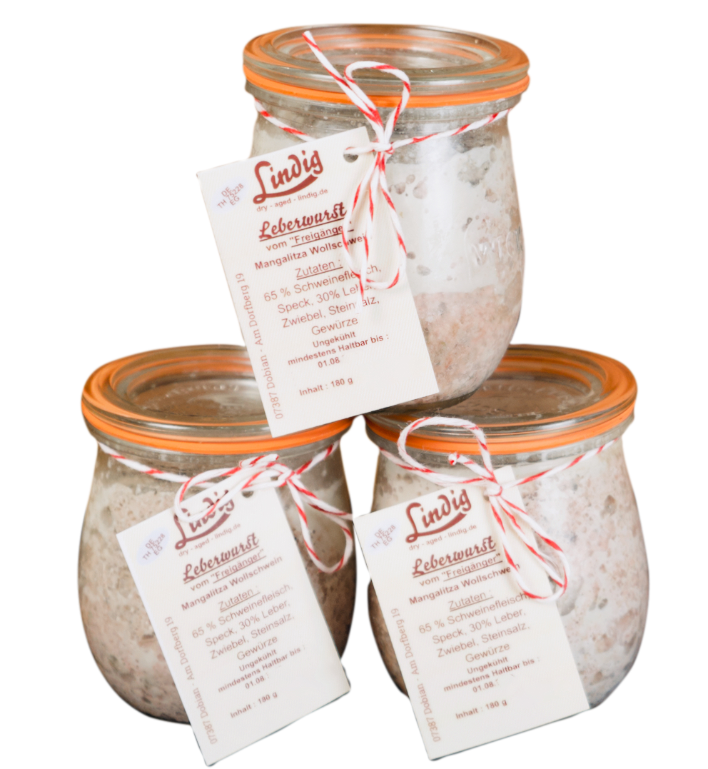 Zutaten: 65% Schweinefleisch, Speck, 30% Schweineleber, Zwiebel, Steinsalz, Gewürze
