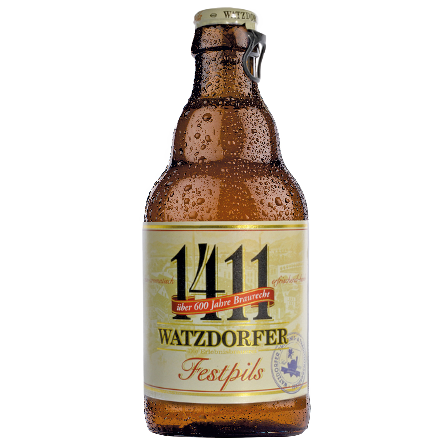 Das Watzdorfer Festpils "1411" ist ein leuchtend goldgelbes Pilsner, im Geschmack anfangs herb fruchtig und im Abgang herb bitter. Das Pilsner der Watzdorfer Brauerei hat eine Stammwürze von 11,5% und wird mit hellem Malz sowie den Hopfensorten Opal, Smaragd, Bavaria Mandarin, Cascade und Simco eingebraut.