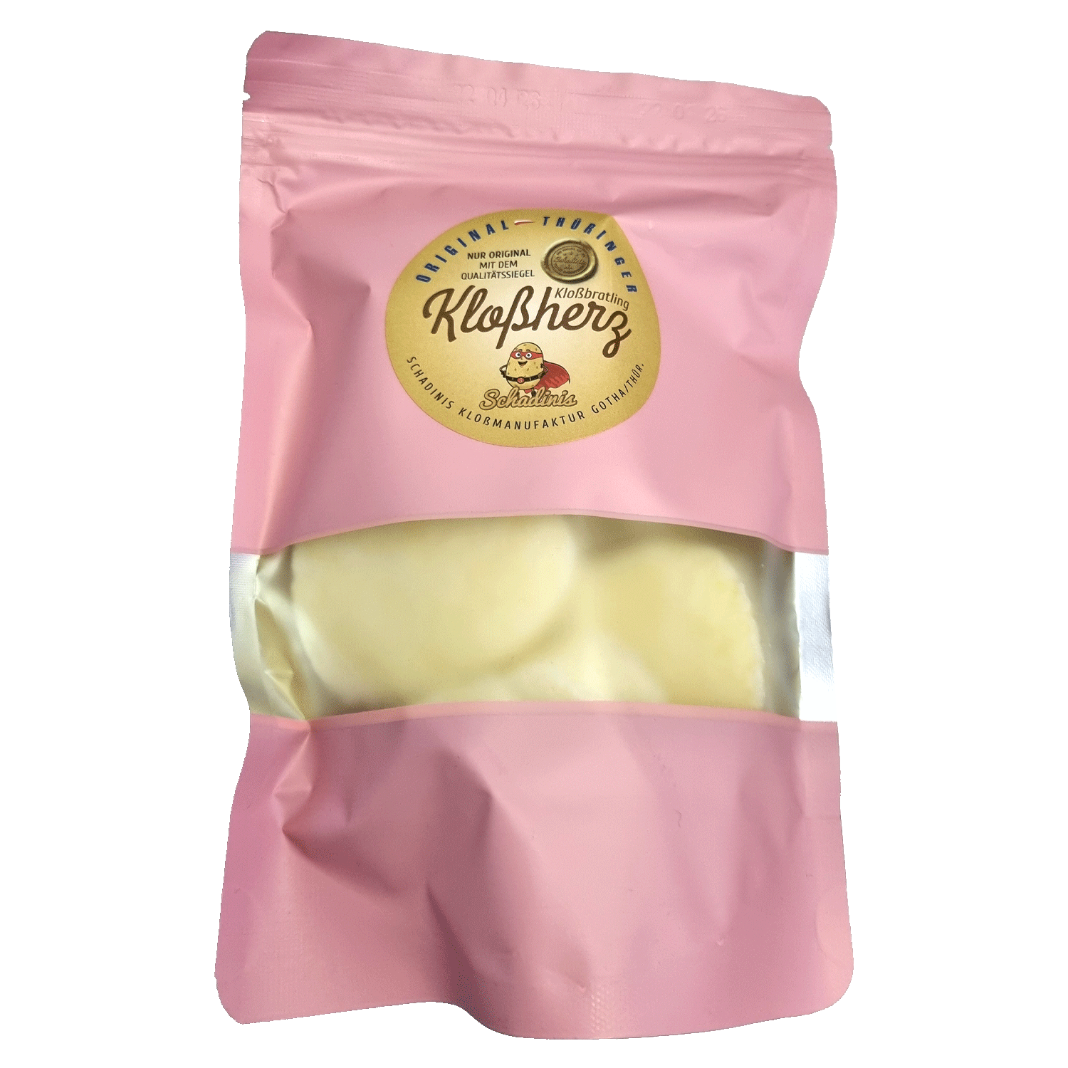 Schadinis Herzklöße werden aus Kartoffel-Kloßteig in einer kleinen Manufaktur im thüringischen Gotha gefertigt. Aufgrund eines eigens entwickelten Haltbarkeitsverfahrens ist dieses Thüringer Kloß Produkt auch ohne Kühlung über mehrere Monate haltbar. Das Produkt kann gekocht gebraten oder frittiert zubereitet werden. Durch unser neues energiesparendes Herstellungsverfahren wird dieses Produkt besonders schonend vorgegart. Das Produkt wurde erstmalig vorgestellt auf der Grünen Woche 2024 in Berlin. Thüringer Innovationskraft in Verbindung mit Thüringer Tradition wurde so deutlich sichtbar präsentiert.