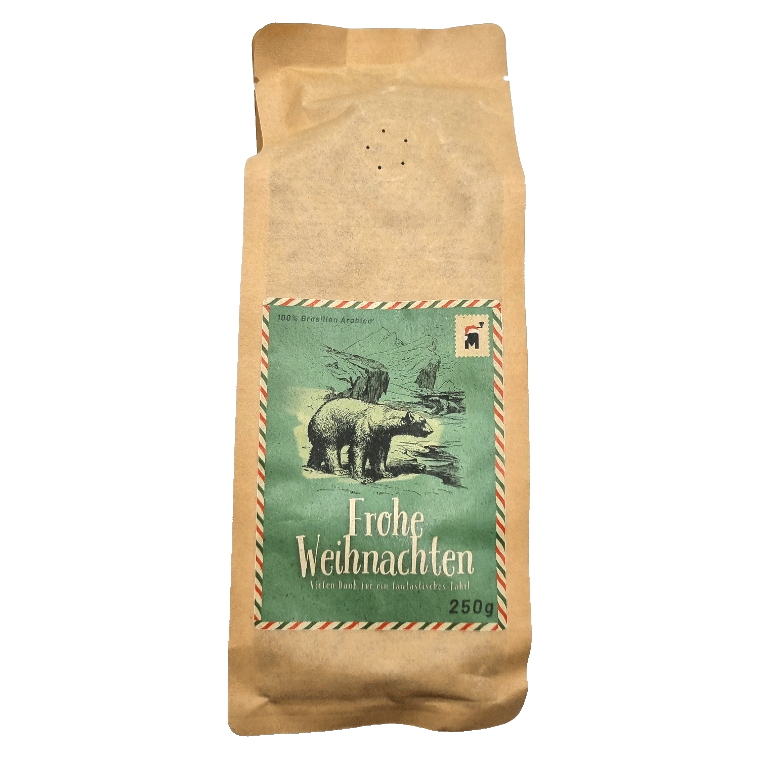100% Brasilien Arabica in Weihnachtlicher Verpackung.