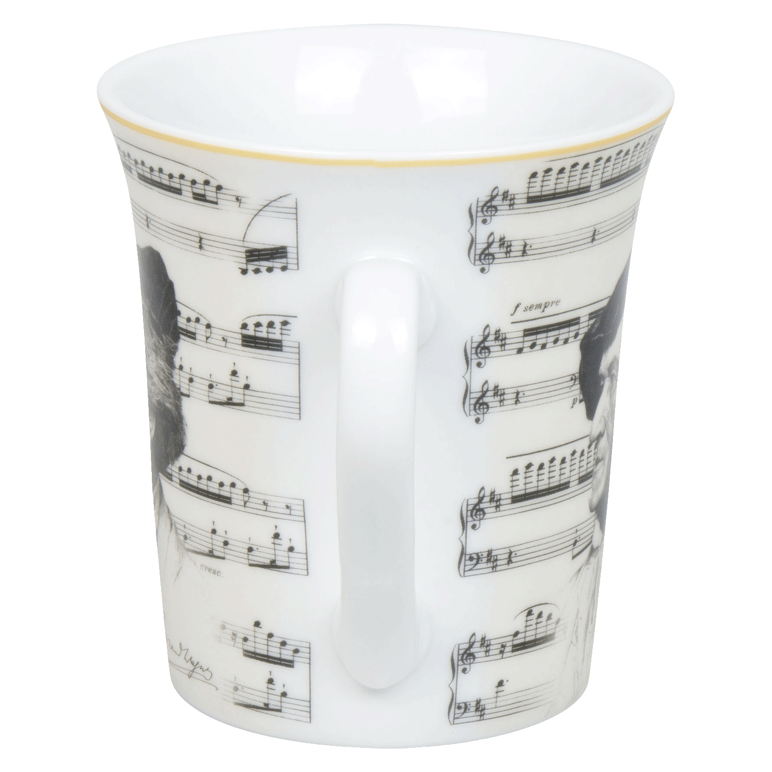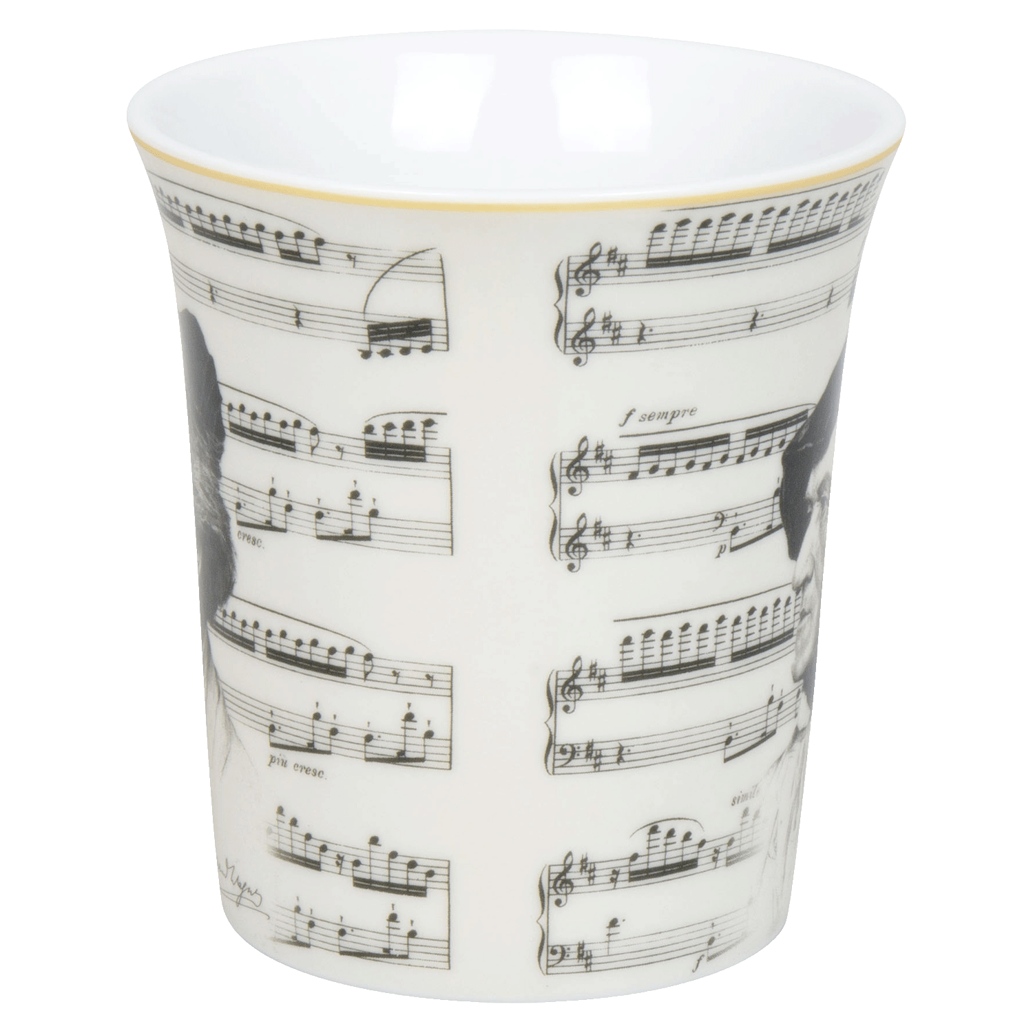Erlebe deinen musikalischen Genuss! Dieser exklusive Becher ist ein Tribut an Richard Wagner, den Meister der Musik der Romantik. Mit einem kunstvollen Porträt Wagners und einer Notenpartitur im Hintergrund bringt er klassische Eleganz in deinen Alltag. Der edle Goldrand verleiht dem Design eine noble Note und macht ihn zum perfekten Begleiter für Liebhaber klassischer Musik.
