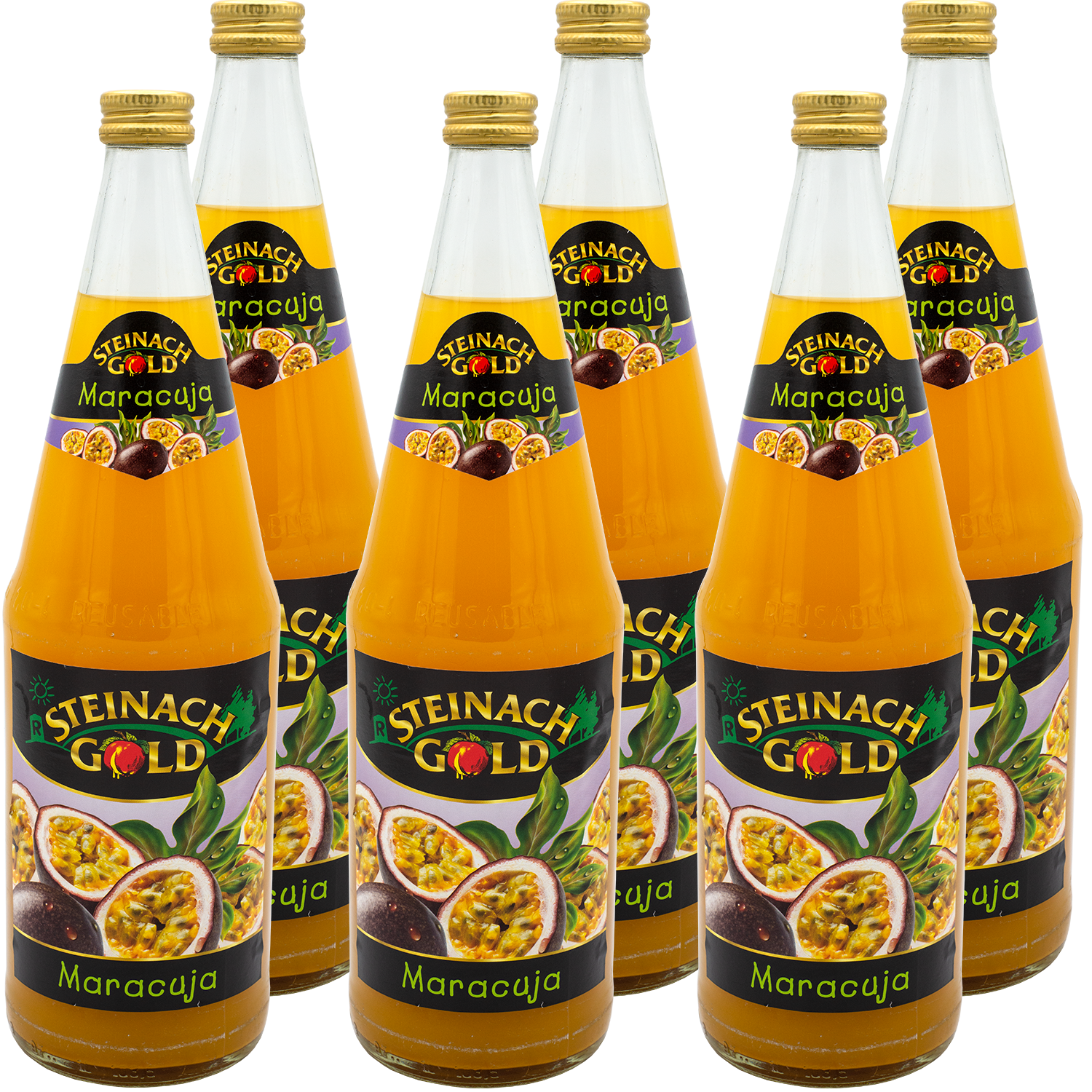 Maracuja-Nektar von Steinach Gold besteht zu mindestens 25% aus Maracuja-Konzentrat. Der süße Nektar aus Maracuja, die auch Passionsfrucht genannt wird, schmeckt wunderbar fruchtig und exotisch.