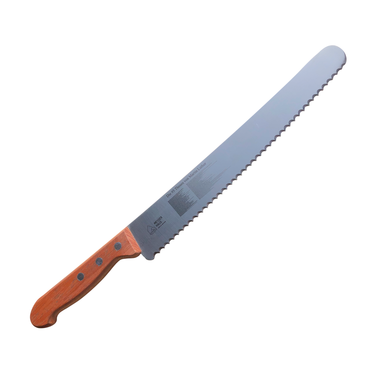 Die mattpolierte Schneide bietet optimale Rostbeständigkeit. Durch das regelmäßige Wellen entlang der Schneide gleitet das Messer sicher und ohne Abrutschen durch alles Schneidgut mit harten Schalen oder Krusten. Der Wellenabstand (von Spitze zu Spitze) beträgt 6 mm. Die klassische Form passt sich jeder Hand gut an und unterstützt müheloses Schneiden und Arbeiten. Griff aus Bubinga Holz, das sehr widerstandsfähig und hart ist.