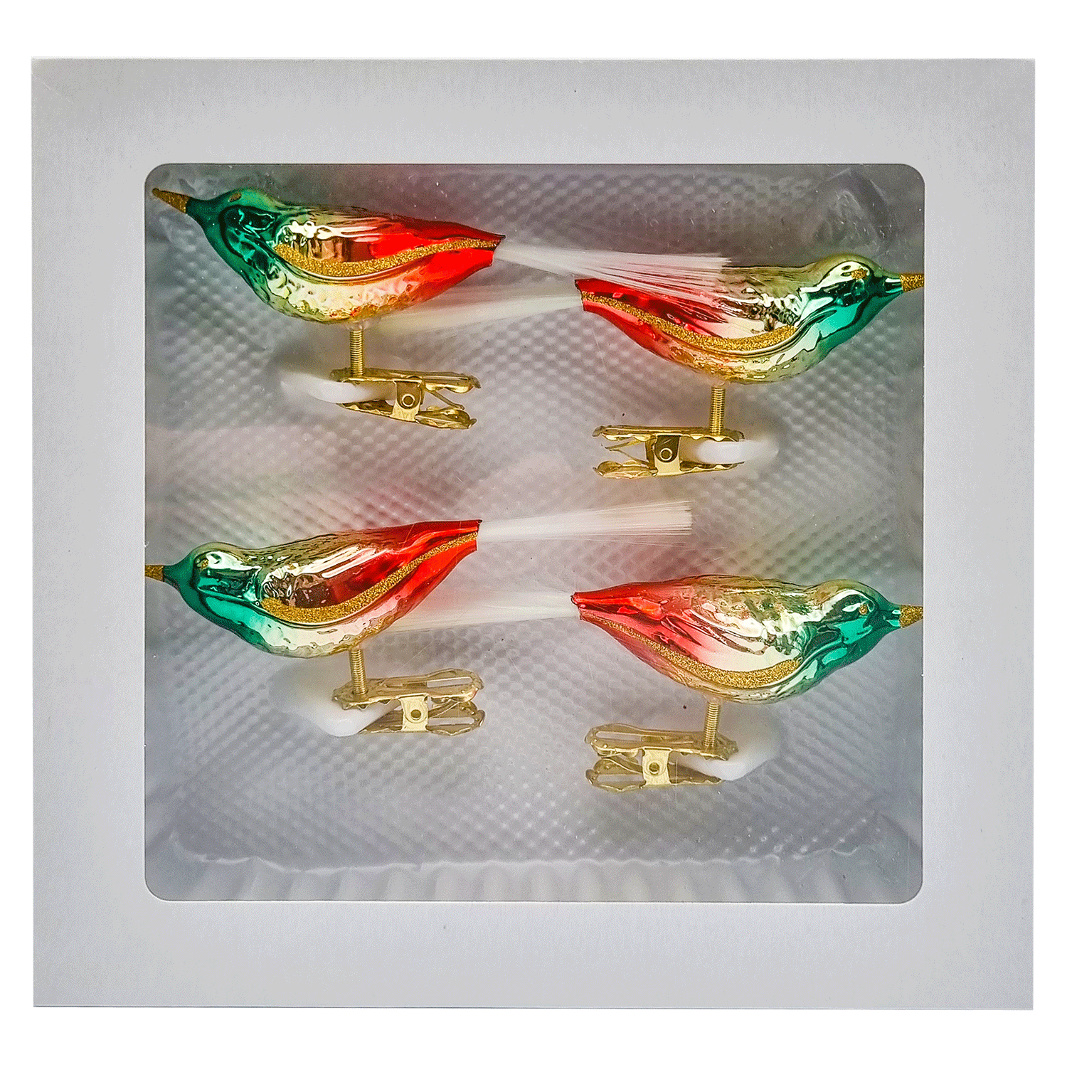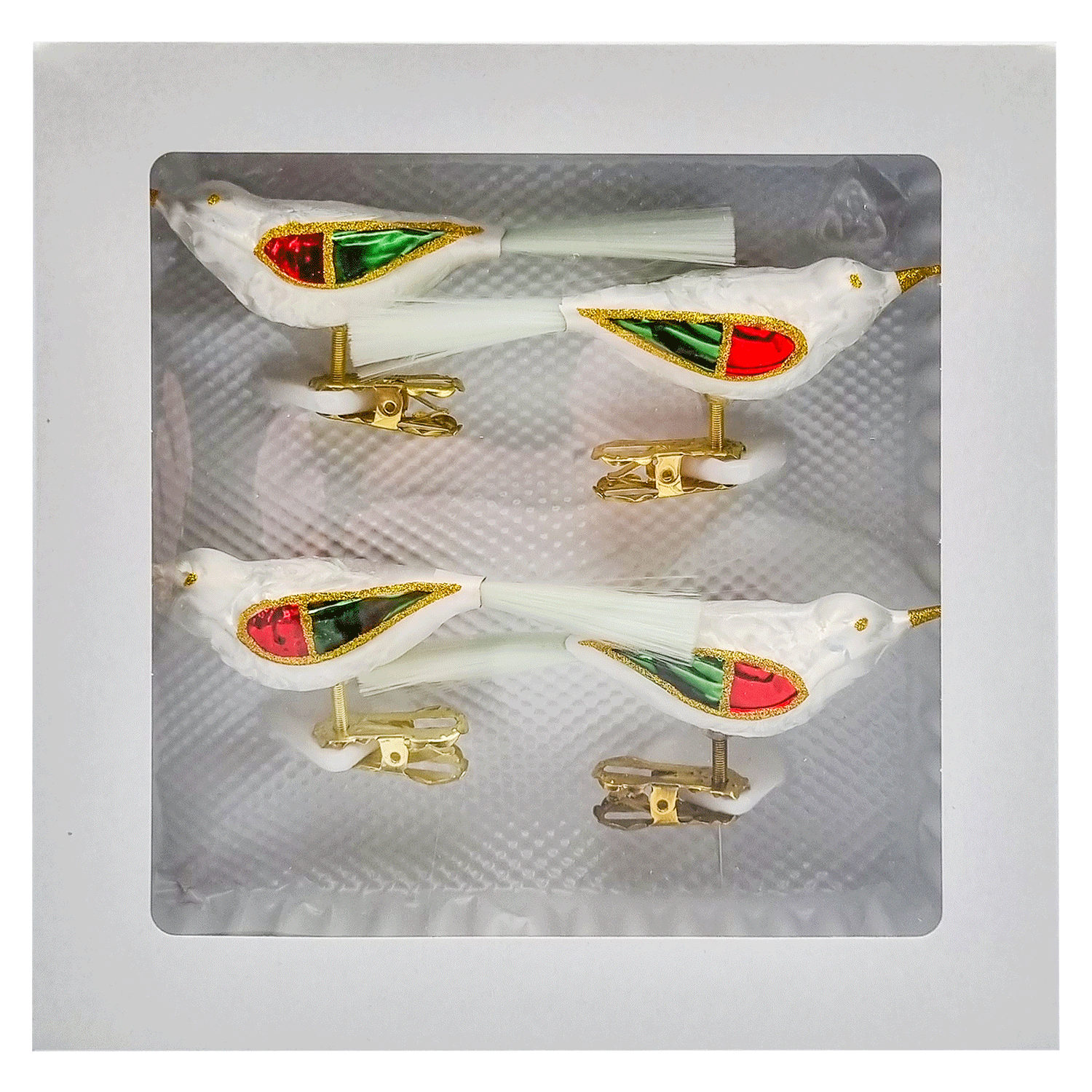 Vogel - weiß, rot, grün - mit Glasfaßer-Schwanz - 4er Set