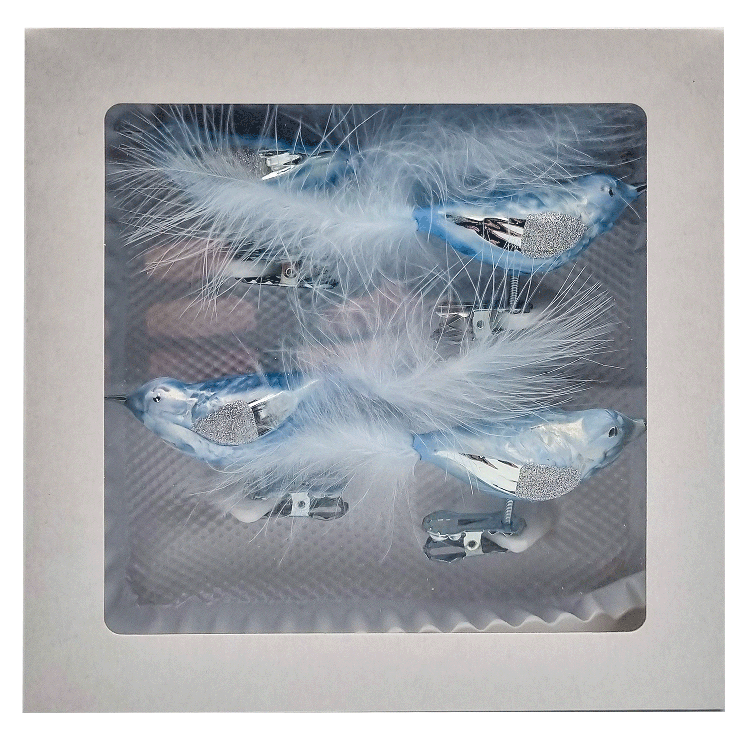 Vogel - eisblau, silber - mit Feder - 4er Set