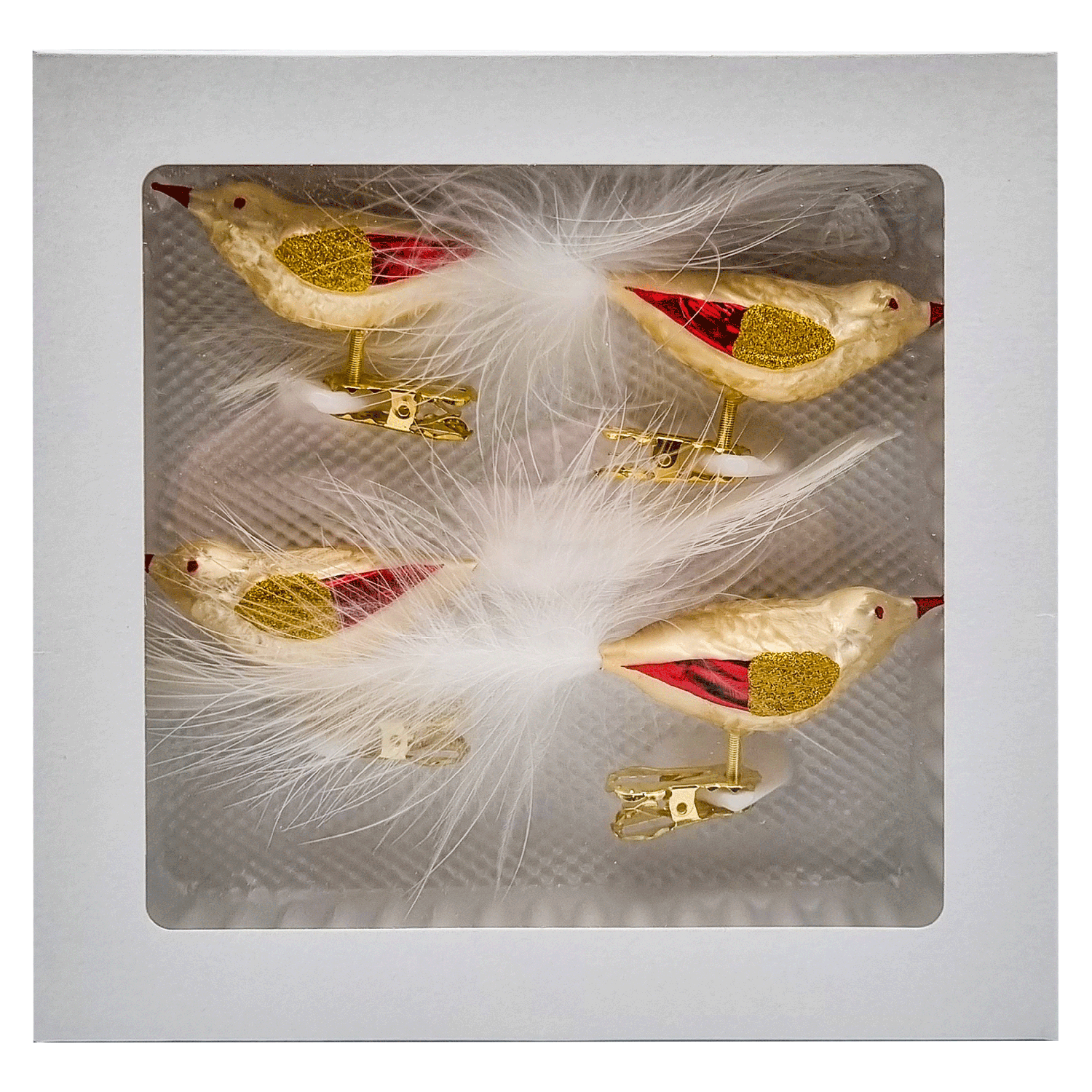 Vogel - weiß, rot, gold - mit Feder - 4er Set