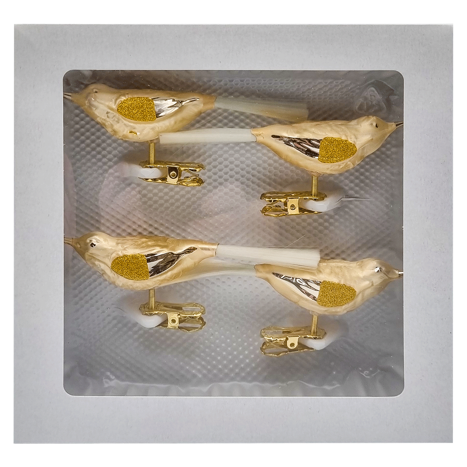 Vogel - gold, silber - mit Glasfaßer Schwanz - 4er Set