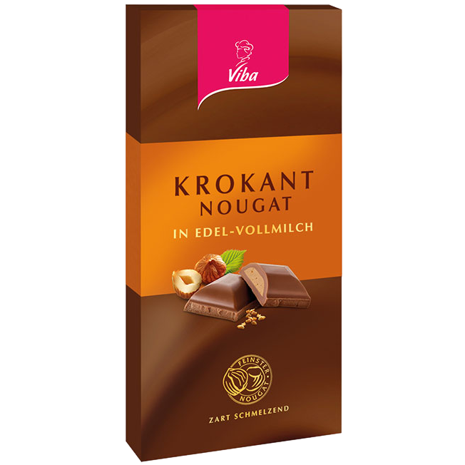 Nougat und Schokolade per se ist bereits eine traumhafte Kombi. Die neuen Edel-Vollmilchschokoladen mit Nougatfüllung sind besonders gekennzeichnet von zartem Schmelz. Heller Nougat mit kleinen Krokantstückchen verleiht der Nougat-Tafelschokolade, Sorte Krokant, ihre Einzigartigkeit – für alle, die es mit leichtem Knuspereffekt in ihrer Schoki mögen.
