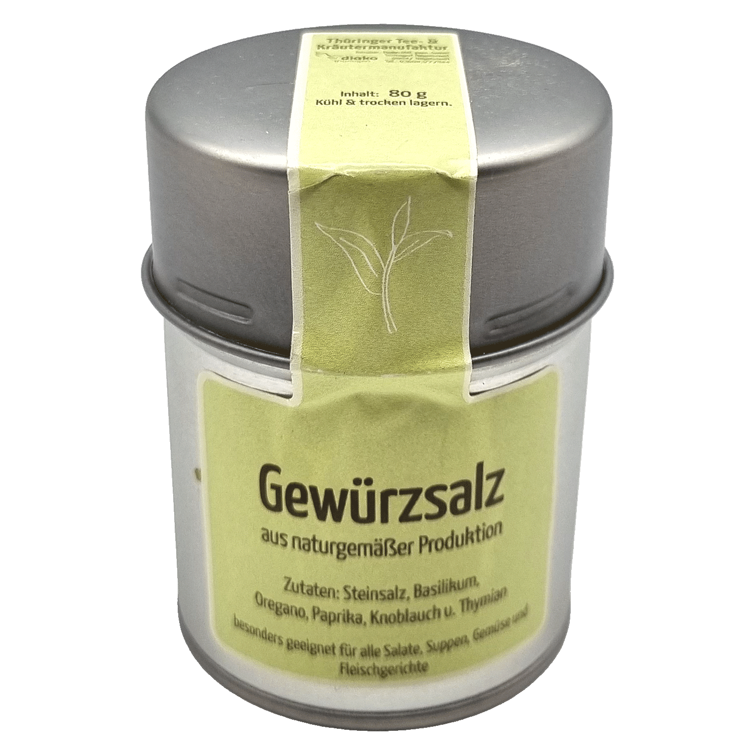 Zutaten: Steinsalz, Basilikum, Oregano, Paprika, Knoblauch, Thymian