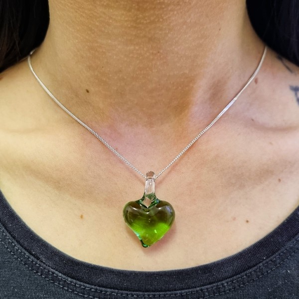 Grünes Herz Glas-Anhänger - einzeln oder mit div. Ketten