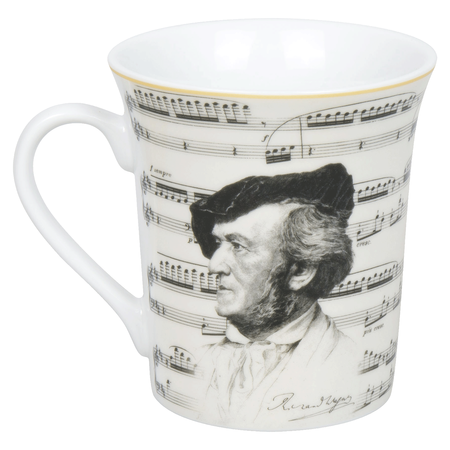 Erlebe deinen musikalischen Genuss! Dieser exklusive Becher ist ein Tribut an Richard Wagner, den Meister der Musik der Romantik. Mit einem kunstvollen Porträt Wagners und einer Notenpartitur im Hintergrund bringt er klassische Eleganz in deinen Alltag. Der edle Goldrand verleiht dem Design eine noble Note und macht ihn zum perfekten Begleiter für Liebhaber klassischer Musik.