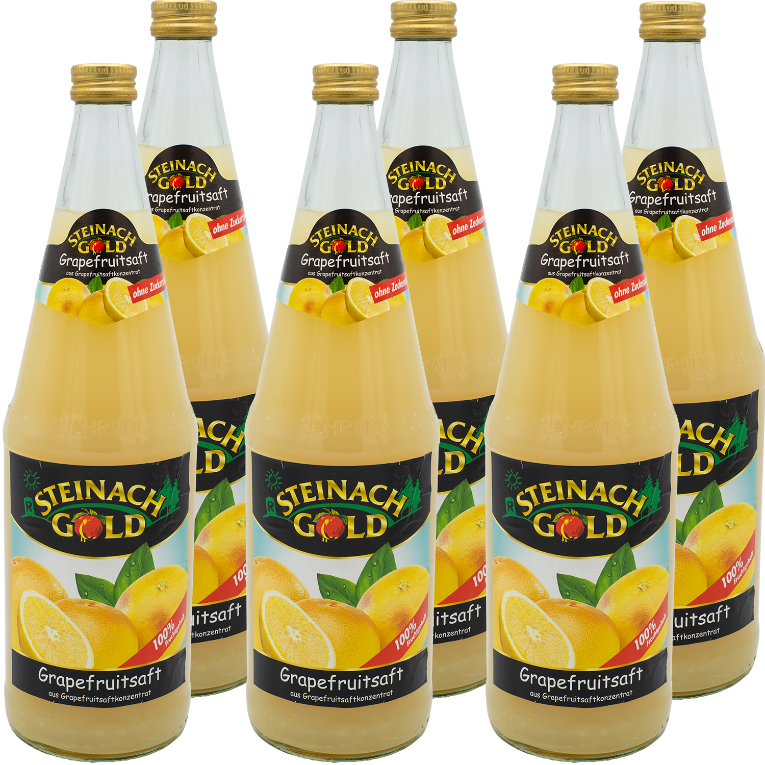 Grapefruitsaft von Steinach Gold ist ein leicht herber Fruchtsaft mit dem vollmundigen Aroma frischer Grapefruits. Der 100% Saft wird aus Grapefruitkonzentrat hergestellt und kommt ganz ohne Zuckerzusatz aus. Grapefruits sind wahre Super Foods und für eine gesunde Ernährung besonders wichtig, denn sie enthalten wertvolle Inhaltsstoffe, unter anderem Antioxidantien und den Ballaststoff Pektin.