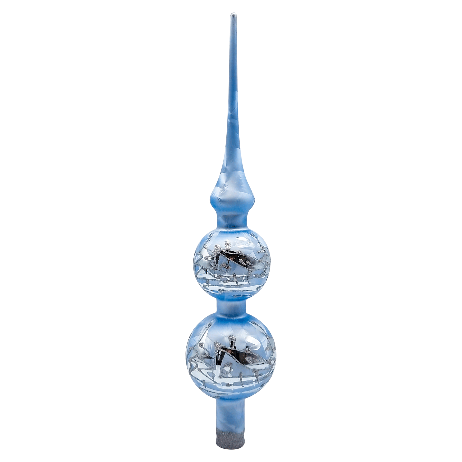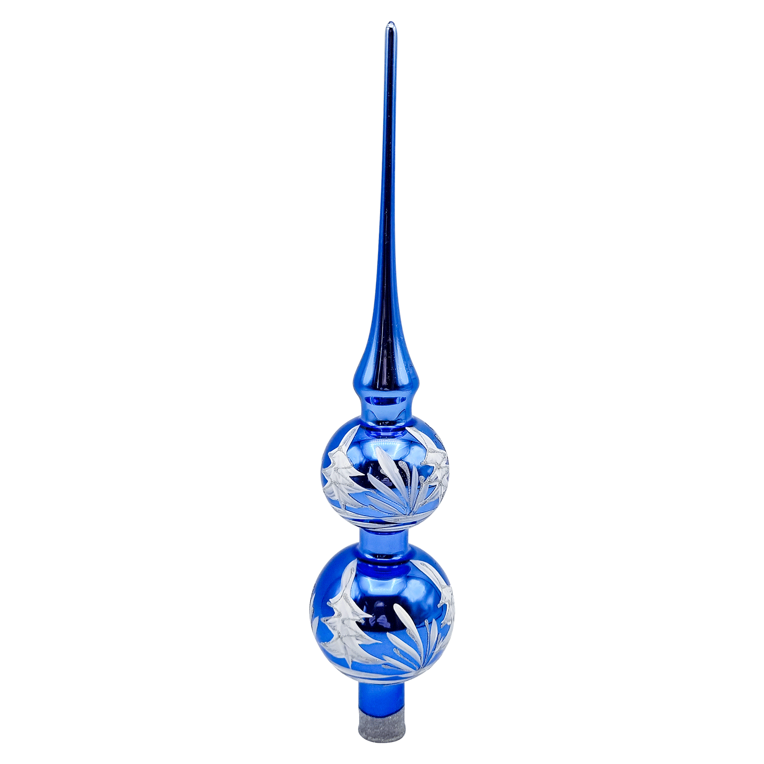 Spitze - königsblau - mit Winterlandschaft in weiß und silber - Kugeln 5/6cm